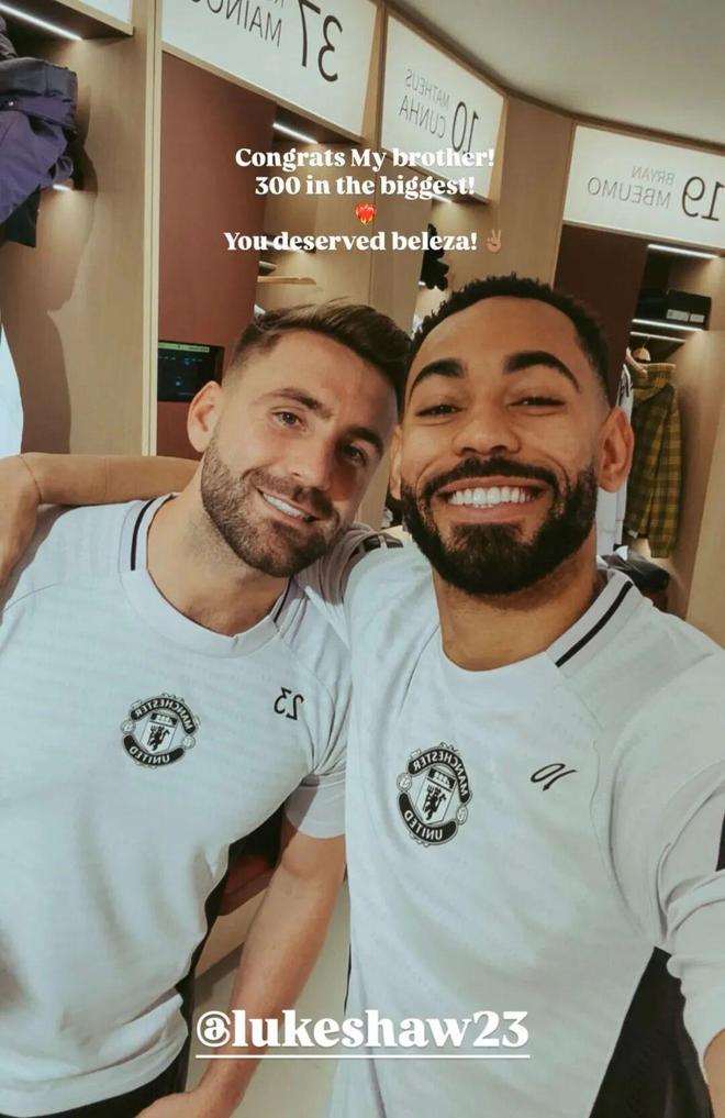 库尼亚祝贺卢克·肖为曼联出战达300场!